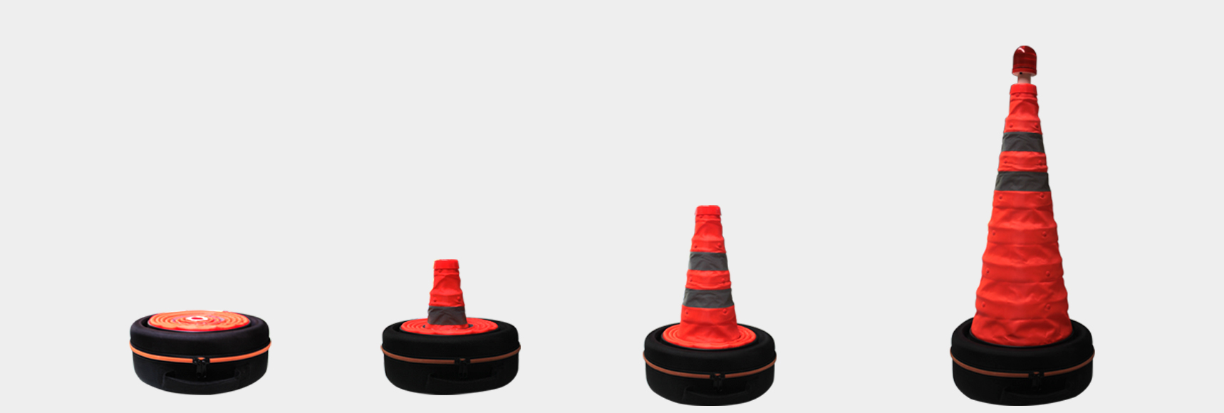 伸縮的椎體便于收納并節省空間(頂部配帶強光LED燈多維度警示,增加安全性);