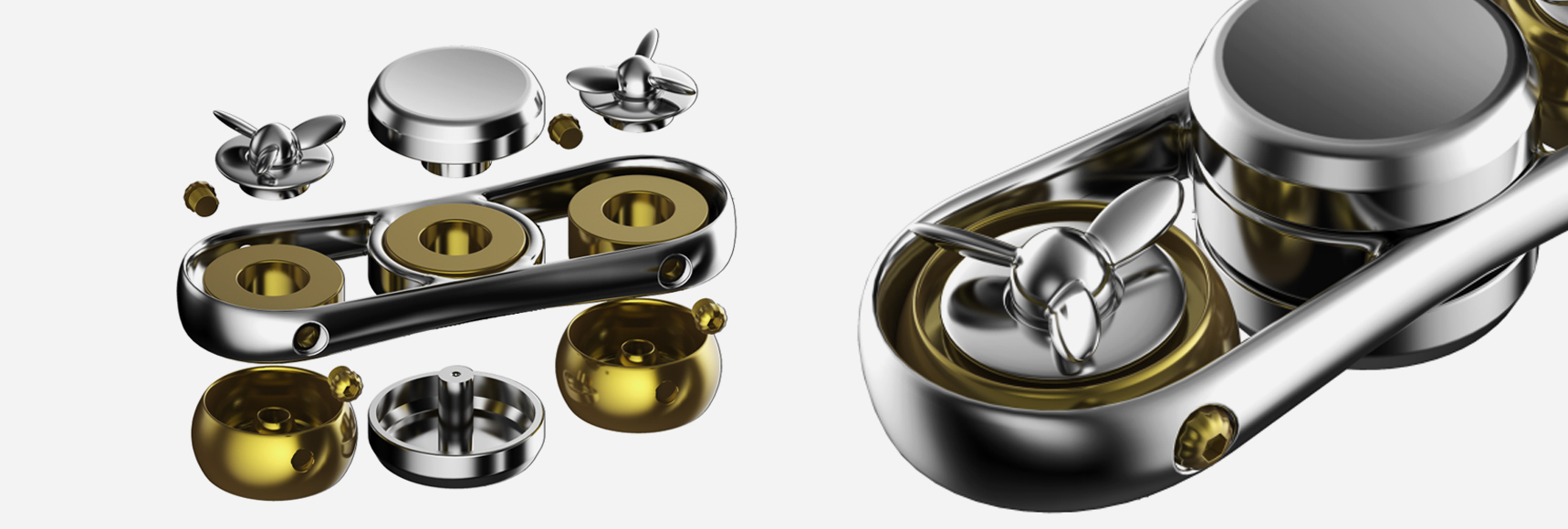 指尖陀螺采用了PVD 真空電鍍金、A+鏡面、5軸 CNC 雕刻等技術(shù),