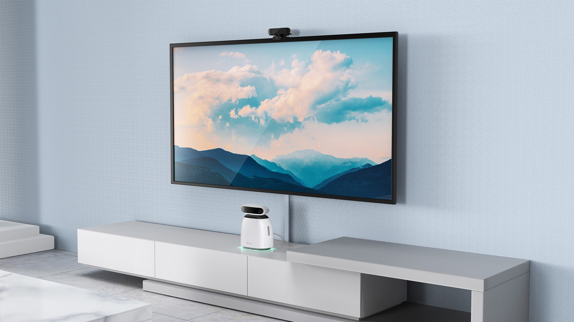 細節上,攝像頭部位裝飾件采取流線造型搭配金屬質感材質,底部隱藏式呼吸燈體現工作情況,塑造智能產品科技氛圍。