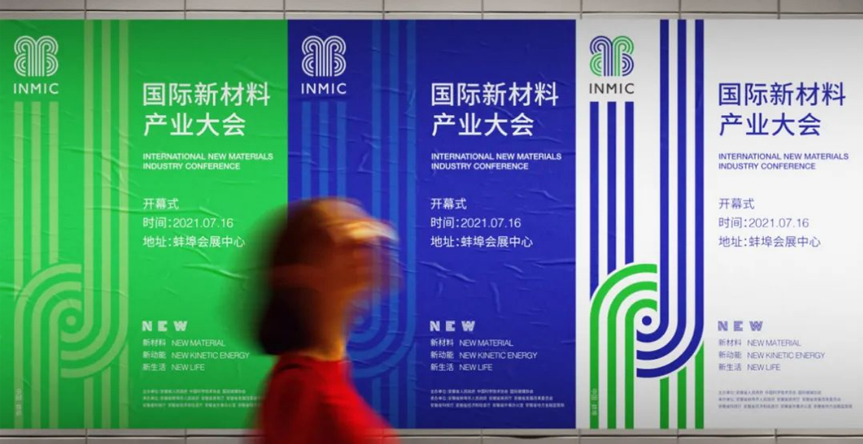 用線面構成的國際化設計語言表達國際新材料產業大會品牌形象,融入莫比烏斯環,