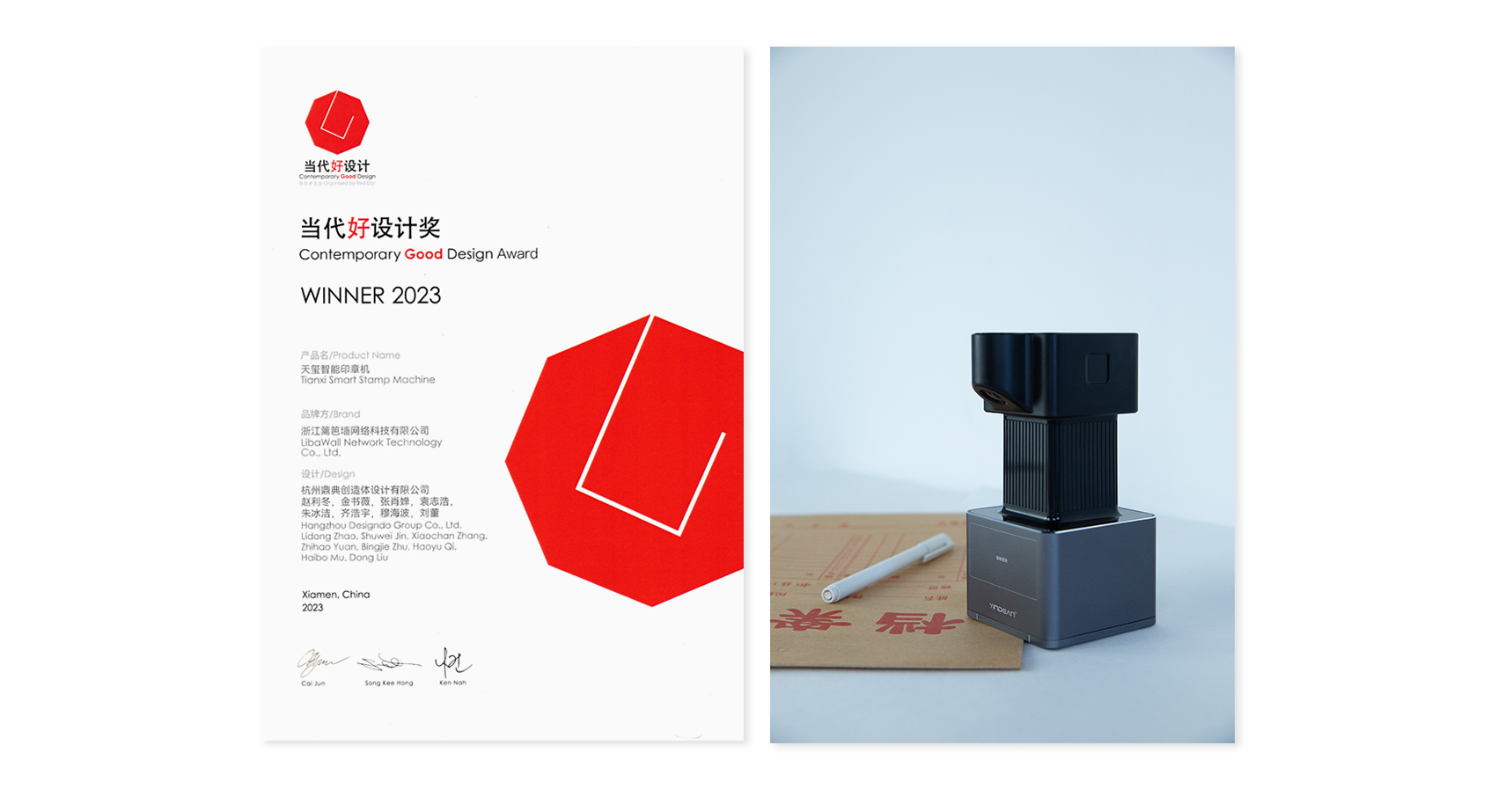 【2023 當(dāng)代好設(shè)計獎】鼎典創(chuàng)造體設(shè)計出品-天璽智能蓋章機榮獲獎項
